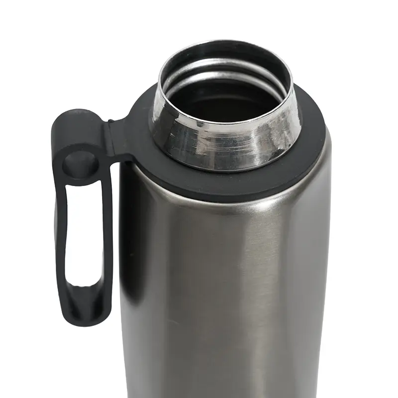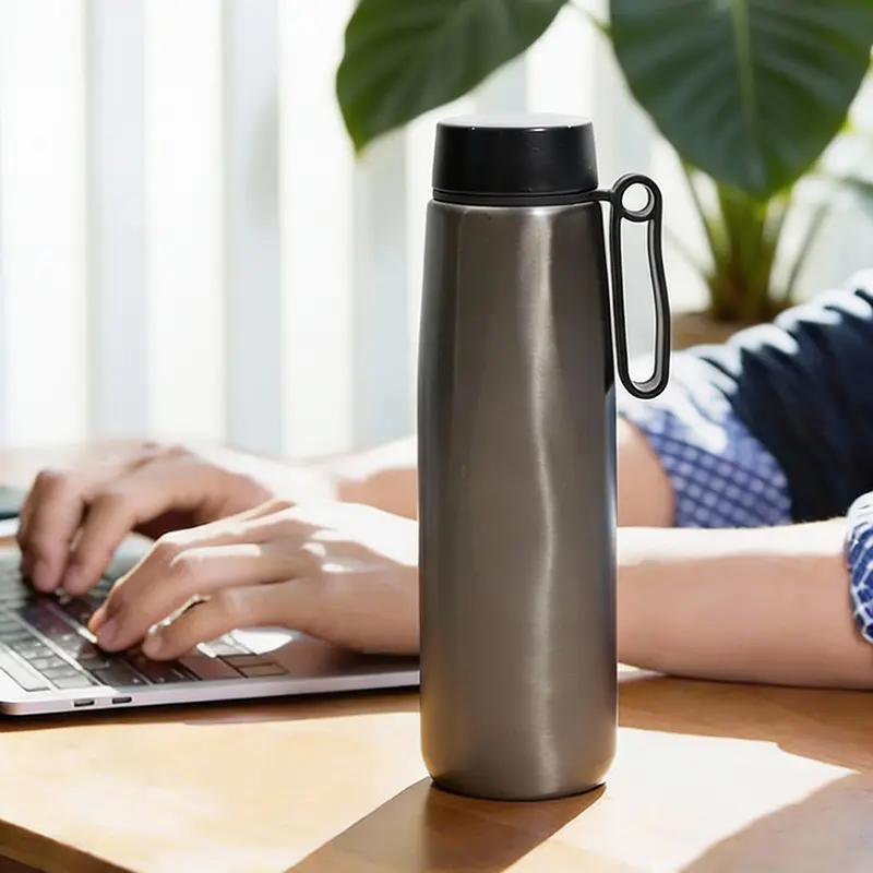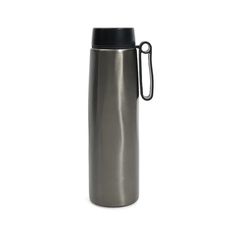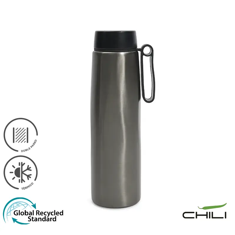 Botella térmica con diseño ergonómico. Hecha de acero inoxidable 304 reciclado con doble pared al vacío que garantiza durabilidad y conservación térmica. Cuenta con una práctica asa giratoria que facilita su transporte y uso diario. Mantiene las bebidas calientes hasta 12 horas y frías hasta 24 horas. Es ideal para quienes llevan un estilo de vida activo, estudiantes, viajeros o profesionales que buscan una opción ecológica y elegante para mantenerse hidratados durante todo el día.