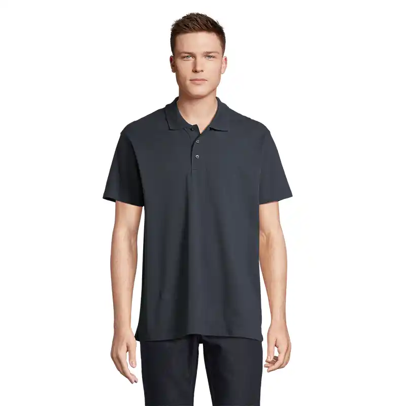 Chomba de pique con cuello de manga corta de 170g, 100% algodón peinado. Corte ajustado, cuello con tapa costura, aberturas laterales, cartera con 3 botones a tono y uno de repuesto. CERTIFICACIÓN: PETA-Approved Vegan. RECOMENDACIONES DE USO: Lavar a máquina a 30°. No blanquear. No secar en máquina. Planchar suavemente, evitando el área estampada. Sol´s.