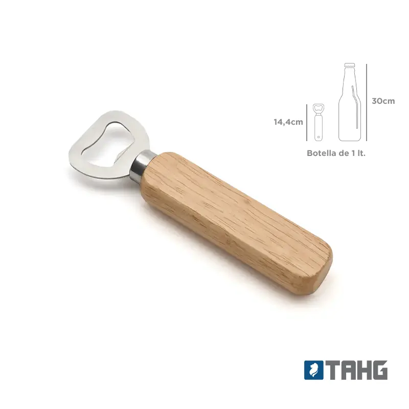 Destapador de botellas fabricado en acero con mando de madera de caucho, combina un diseño clásico con materiales resistentes y duraderos.