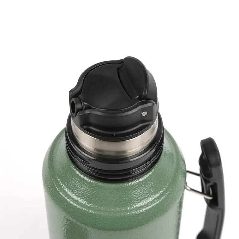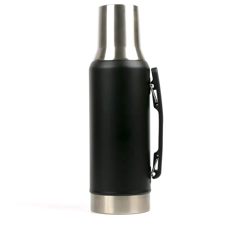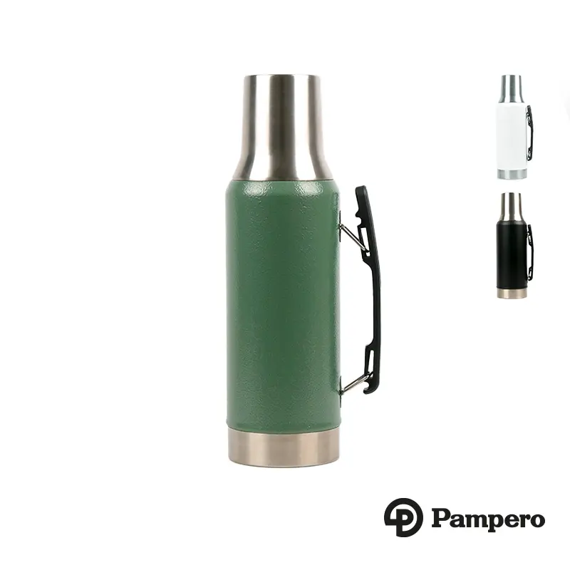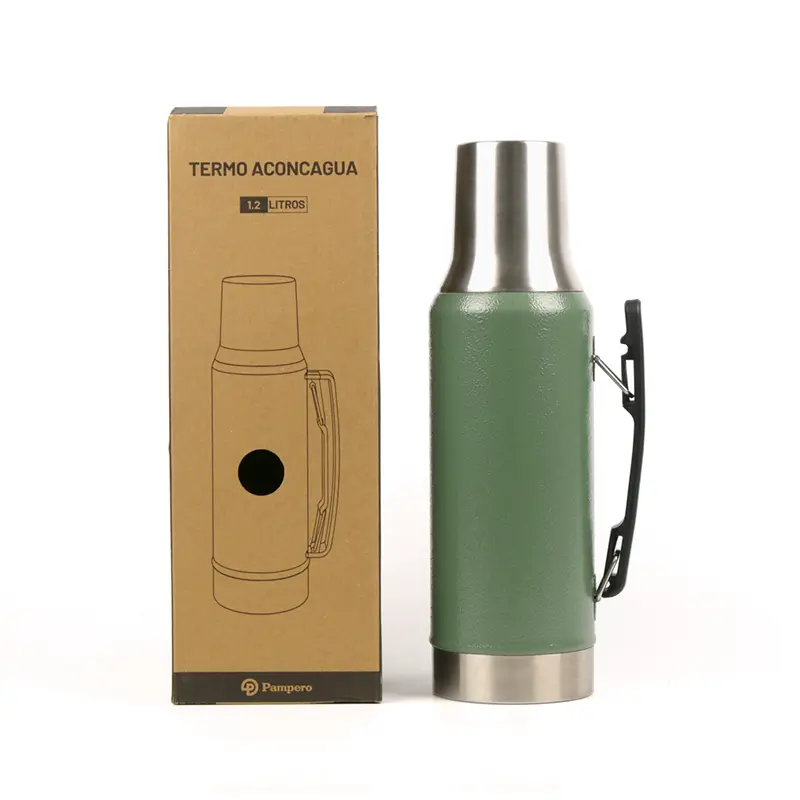 Termo de acero inoxidable con tapa multifunción, fabricado en acero interior 304 y exterior 201. Cuenta con tapa que puede utilizarse como mate, pico cebador, sistema de cierre seguro y asa lateral para un agarre cómodo. Es ideal para mantener bebidas calientes o frías durante largas jornadas de trabajo, actividades al aire libre o viajes, gracias a su capacidad térmica y diseño resistente.