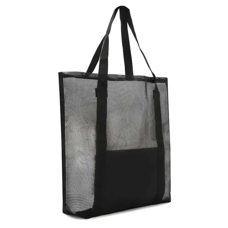 Bolso tote versátil y resistente, ideal para el día a día o compras sostenibles. Está fabricado con malla RPET y poliéster 600D, materiales reciclados y duraderos. Cuenta con un amplio compartimento principal, asas reforzadas para mayor comodidad y resistencia, estructura ligera que facilita el transporte, y diseño de red que combina estilo moderno con practicidad. Es ideal para llevar compras, usar en la playa, transportar artículos del gimnasio o como bolso diario, ofreciendo una opción ecológica, práctica y elegante.